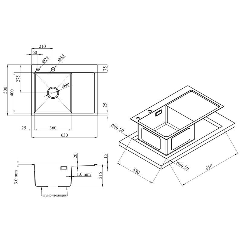 Мийка для кухні Kroner KRP Geburstet-6350LHM 63х50 см крило справа нержавіюча сталь CV031320