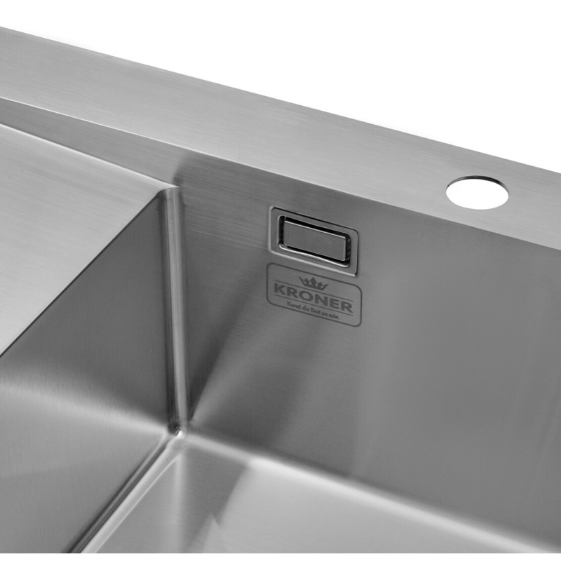 Кухонна мийка Kroner KRP Gebürstet – 6350RHM (3,0/1,0 мм)виготовлена з високоякісної харчової нержавіючої сталі, що забезпечить виробу довгий термін служби.Чудова якість та елегантний дизайн мийки задовольнить найвищі вимоги та створить затишок у вашому домі. Вихідний отвір сифона виготовлено з нержавіючої сталі з контейнером для відходів у формі відра та закрито кришкою, яка може використовуватися для збору води в чашу. Раковина оснащена переливом для зливу води в екстрених випадках. Вбудований спосіб установки дозволяє встановити мийку в будь-якому з можливих варіантів: класичний врізний - над стільницею, вбудований - врівень зі стільницею або під стільницю.
