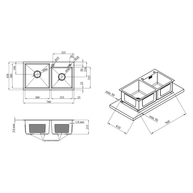 Мийка для кухні Kroner KRP Geburstet-7843ZHM 78х43 см з дозатором та сушаркою нержавіюча сталь CV022805