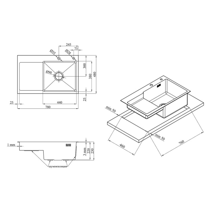 Мийка для кухні Kroner KRP Geburstet-7848RHM 78х48 см крило зліва нержавіюча сталь CV030022