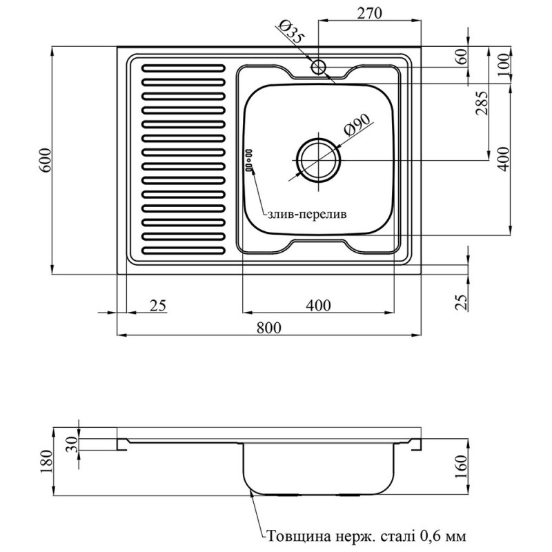 Мийка для кухні Kroner KRP Polierte-6080R06160 80х60 см чаша справа нержавіюча сталь CV022818