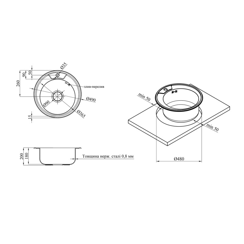 Мийка для кухні Kroner KRP Satin-49008180 ⌀49 см нержавіюча сталь CV022766