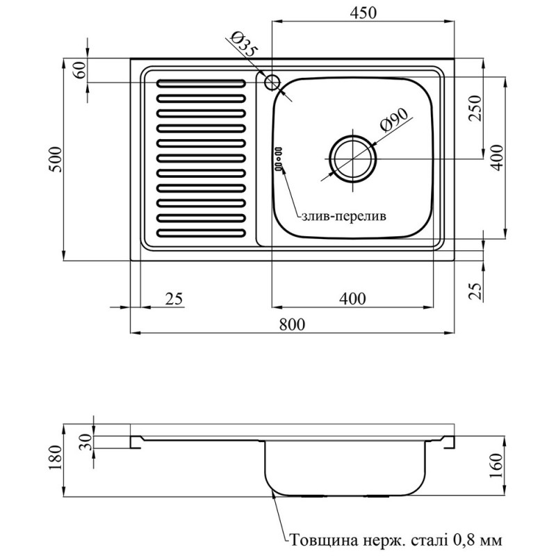 Мийка для кухні Kroner KRP Satin-5080R08180 80х50 см крило зліва нержавіюча CV022821