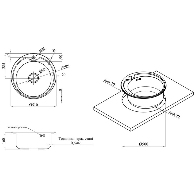 Мийка для кухні Kroner KRP Satin-51006160 ⌀51 см нержавіюча сталь CV022769