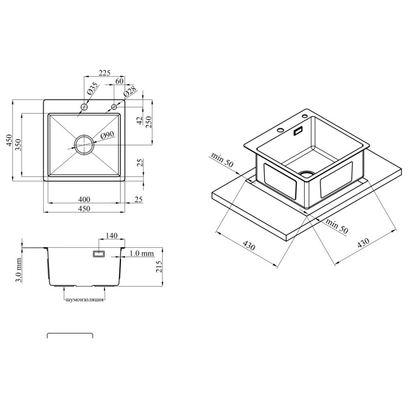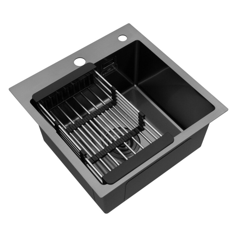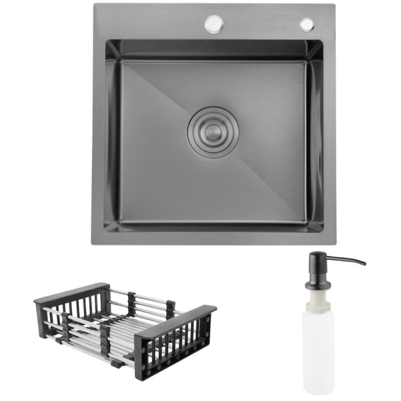 Мийка для кухні Kroner KRP Schwarze-4545HM 45х45 см з дозатором та сушаркою нержавіюча сталь чорний PVD CV033856