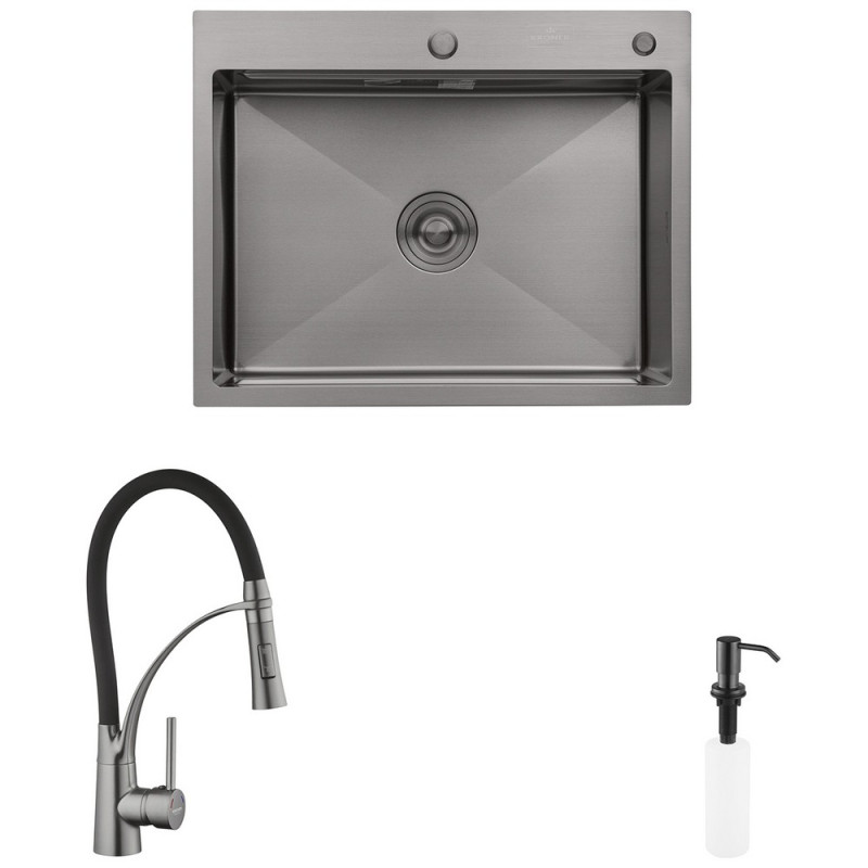 Мийка для кухні Kroner KRP Schwarze-6350HM 63х50 см із змішувачем та дозатором нержавіюча сталь чорний PVD CVS30076