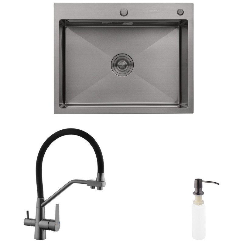 Мийка для кухні Kroner KRP Schwarze-6350HM 63х50 см із змішувачем та дозатором нержавіюча сталь чорний PVD CVS30117