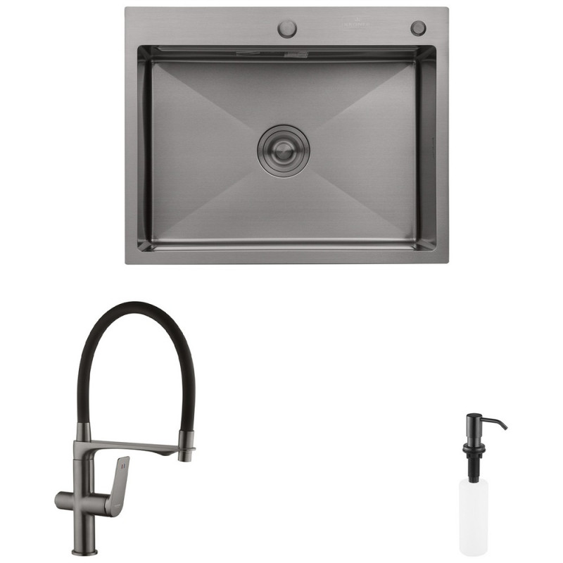 Мийка для кухні Kroner KRP Schwarze-6350HM 63х50 см із змішувачем та дозатором нержавіюча сталь чорний PVD CVS30125