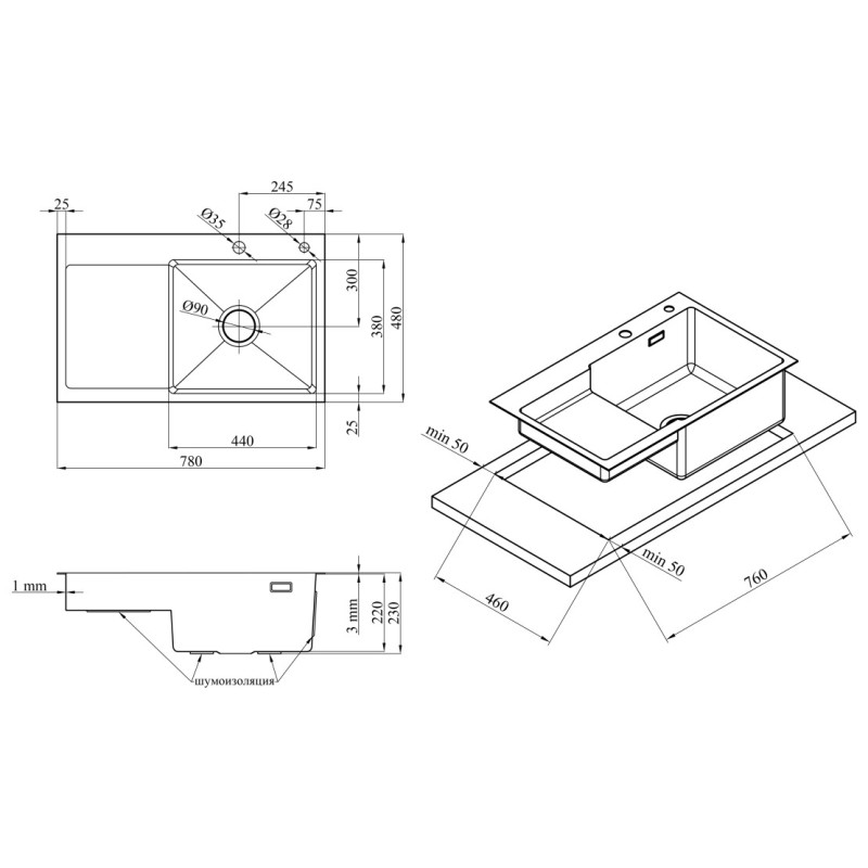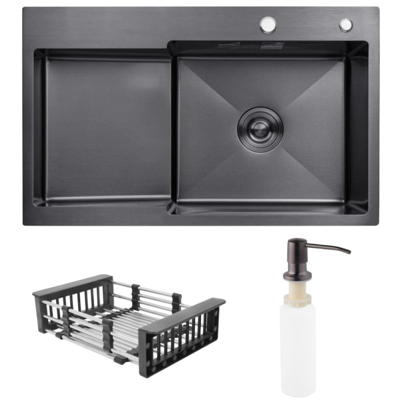 Мийка для кухні Kroner KRP Schwarze-7848LHM 78х48 см крило зліва нержавіюча сталь чорний PVD CV030024