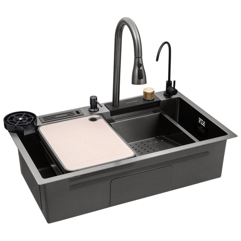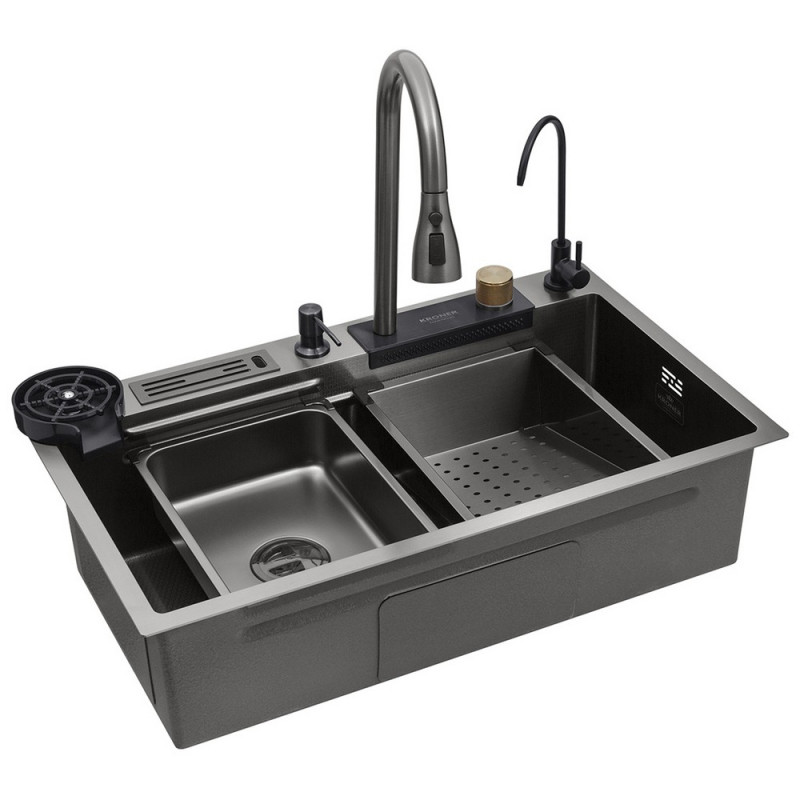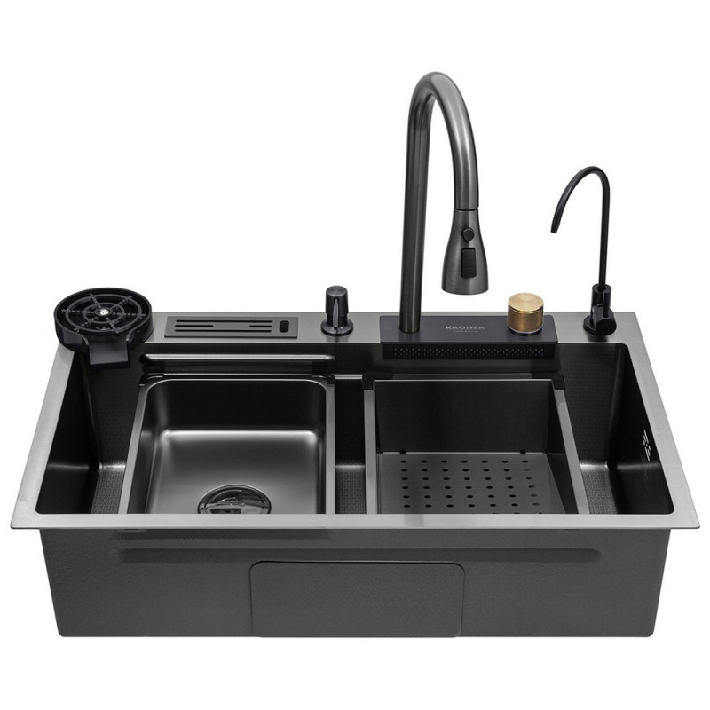 Мийка для кухні Kroner KRP Schwarze-SET7545NBPVD 75х46 см із змішувачем та аксесуарами нержавіюча сталь чорний PVD CV033805