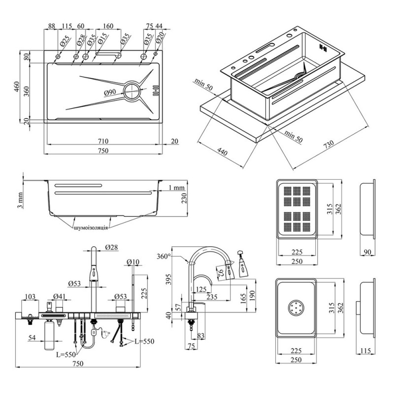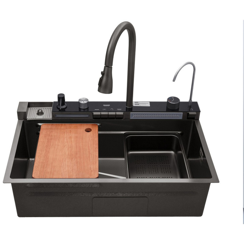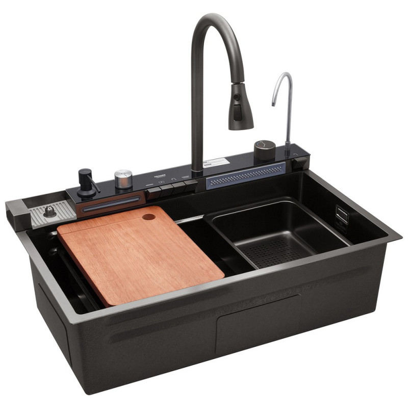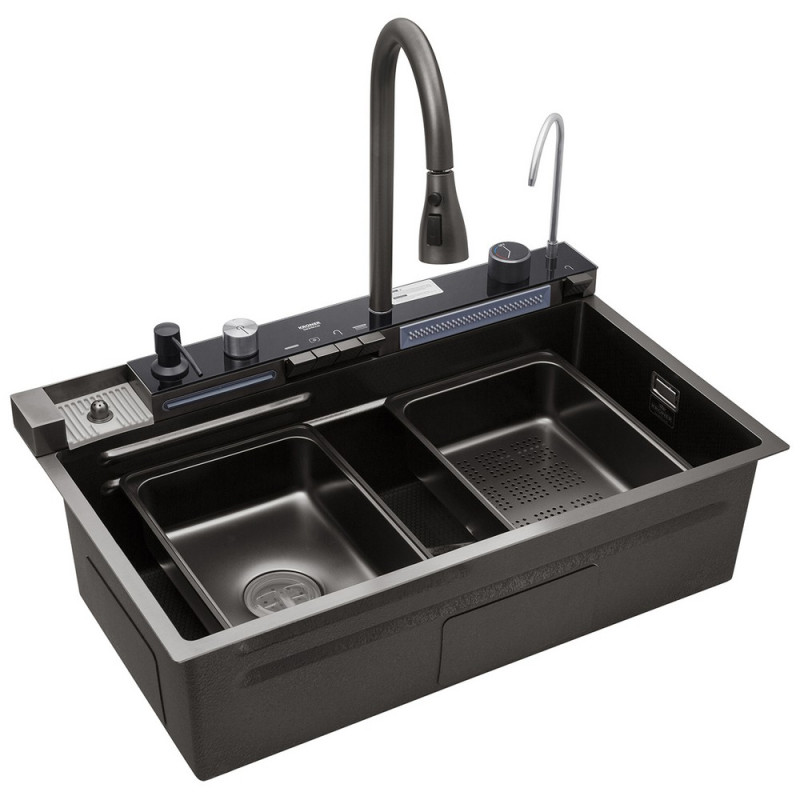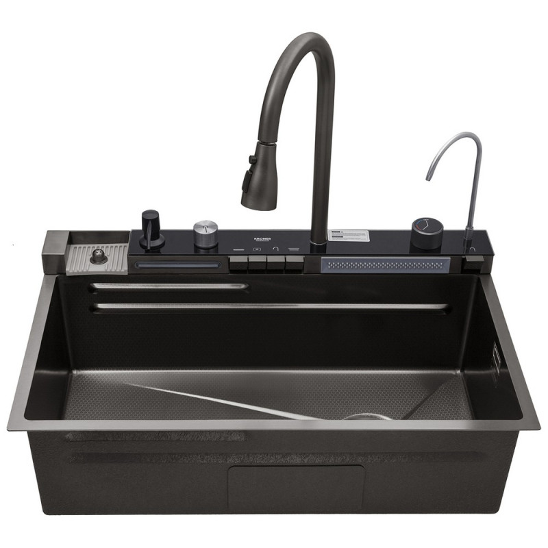 Мийка для кухні Kroner KRP SchwarzeSET7546ARTHM 75х46 см із змішувачем та дозатором нержавіюча сталь чорний PVD CV033375