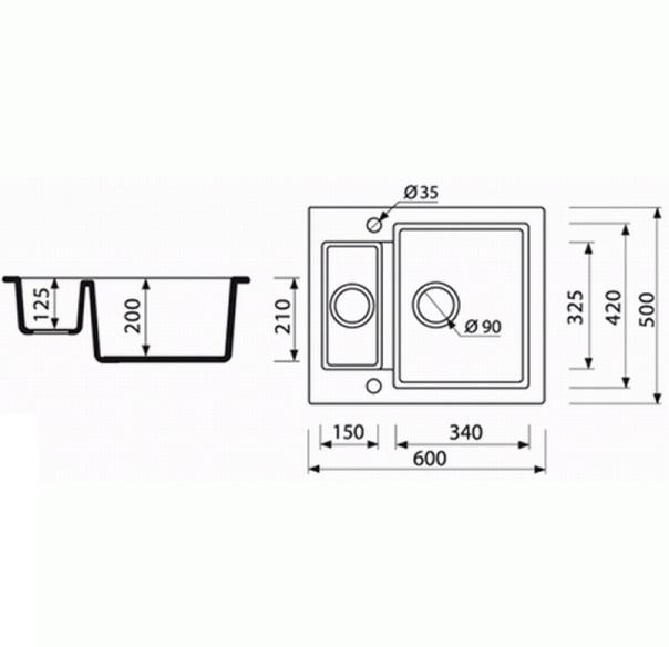 Мийка для кухні Marmorin Bario 1,5k 60х50 см штучний камінь Magranit білий