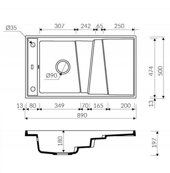 - Розмір чаші: 349x474x180 мм