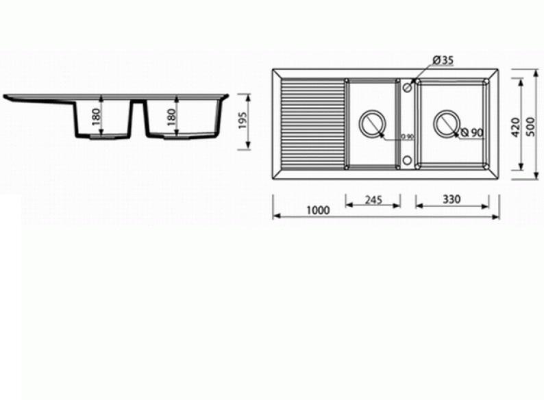 - Форма мийки: прямокутна