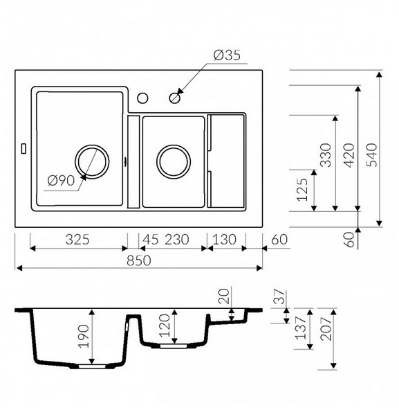 - Матеріал: штучний граніт (Маграніт)