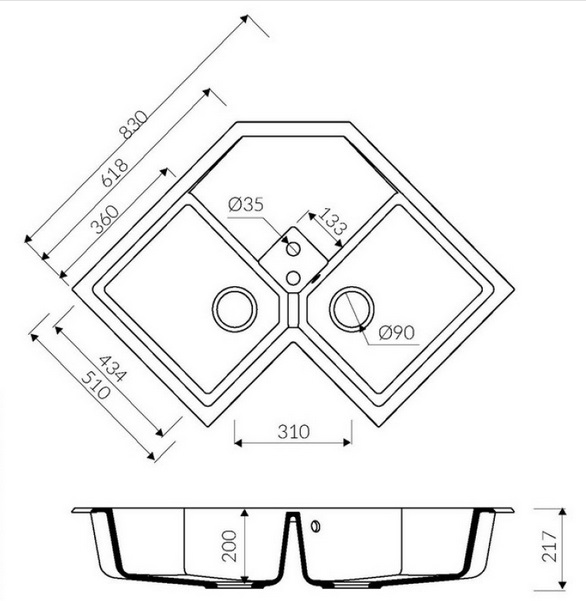 - Розмір 2 чаші: 434х360х200 мм