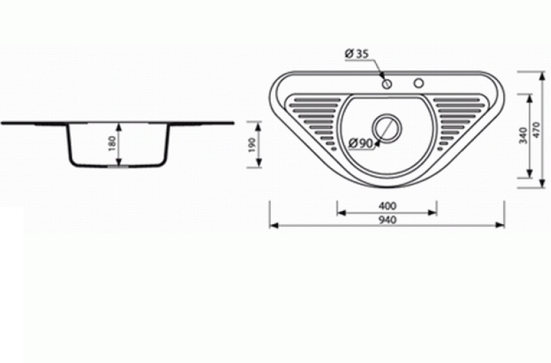 - Діаметр зливного отвору, мм (дюйм): 90
