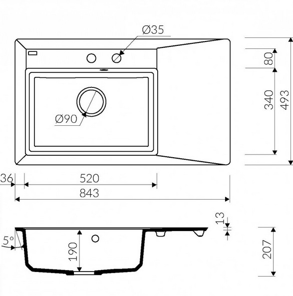 - Отвір для змішувача: є