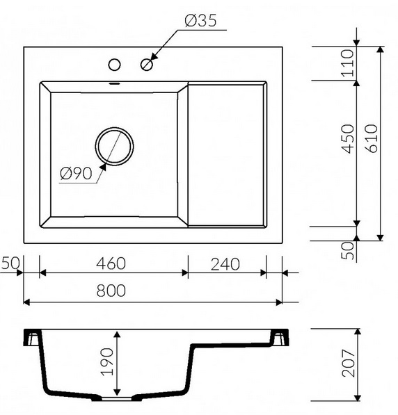Мийка для кухні Marmorin Nero 1k 0,50 80х61 см штучний камінь Magranit чорний