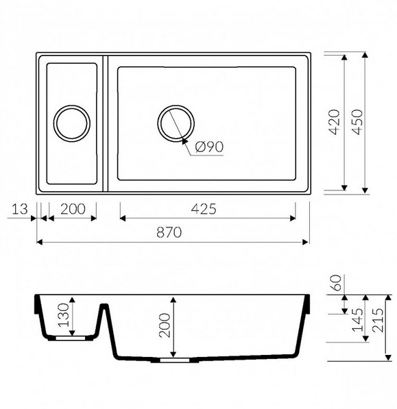 Мийка для кухні Marmorin Olwin 1,5k 87х45 см штучний камінь Magranit чорний