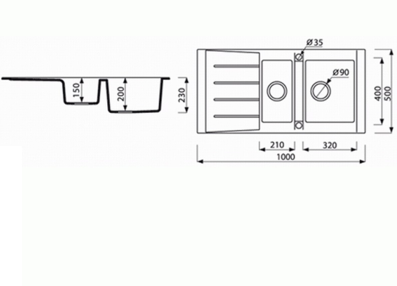 Мийка для кухні Marmorin Profir 1,5k 10 100х50 см штучний камінь Magranit сірий 160 513 003