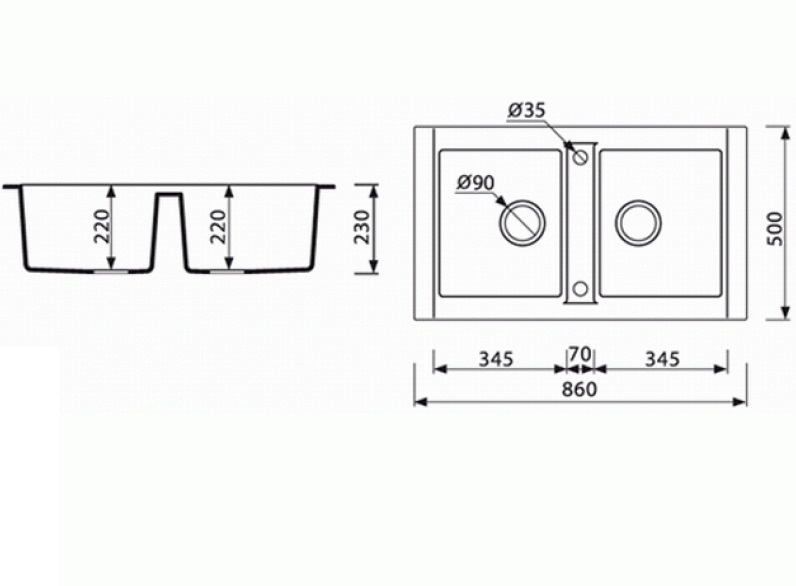 Мийка для кухні Marmorin Profir 2k 86х50 см штучний камінь Magranit сірий 160 203 003
