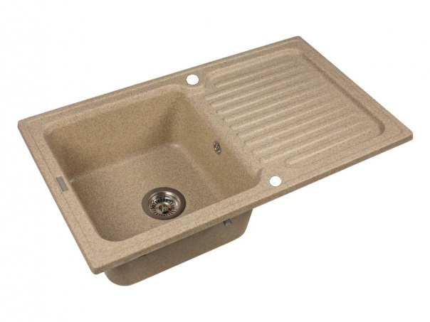 - Естетична привабливість. Кухонні мийки із синтетичного каменю відрізняються різноманітністю форм та відтінків. Таку сантехніку ви зможете вписати у будь-яке оточення.