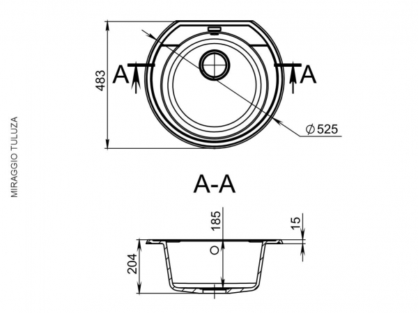 Мийка для кухні Miraggio Tuluza Ø52,5 см кварцовий пісок Mirastone шоколад 0001593
