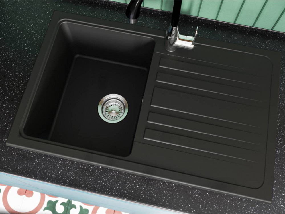 Мийка для кухні Miraggio Versal 75,8 х46, 2 см кварцовий пісок Mirastone чорний 0002349