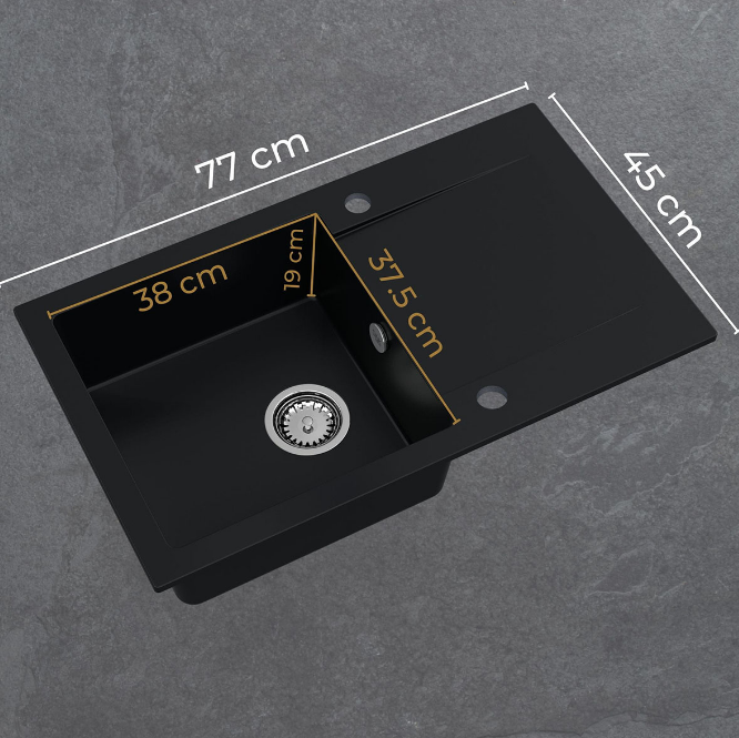 Мийка для кухні Sink Quality Ferrum 1KDO 77x45x21 з переливом нанограніт чорний з золотом FER.L.1KDO.X