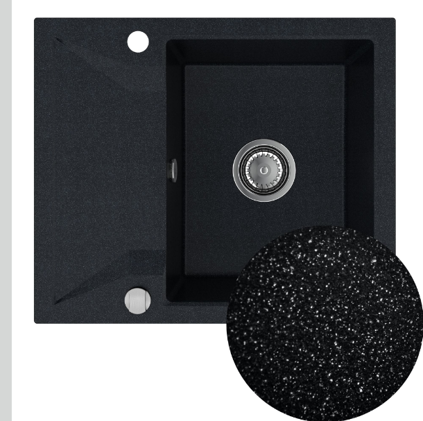 Мийка для кухні Sink Quality Obsidian 1KKO 59x50x21 см з переливом нанограніт чорний парча OBS.B.1KKO.X
