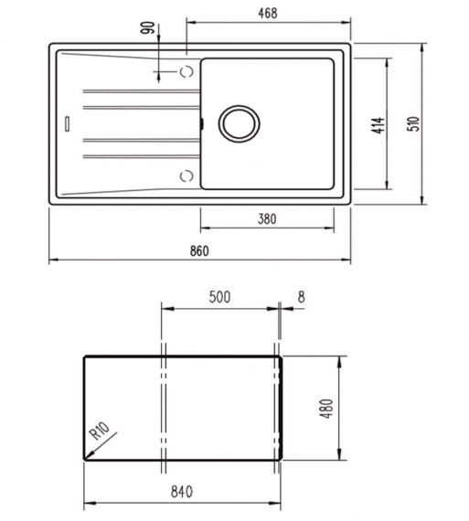 1) Мийка для кухні Teka Stone 50 B-TG 1B 1D 86х51 см врізна теграніт білий
