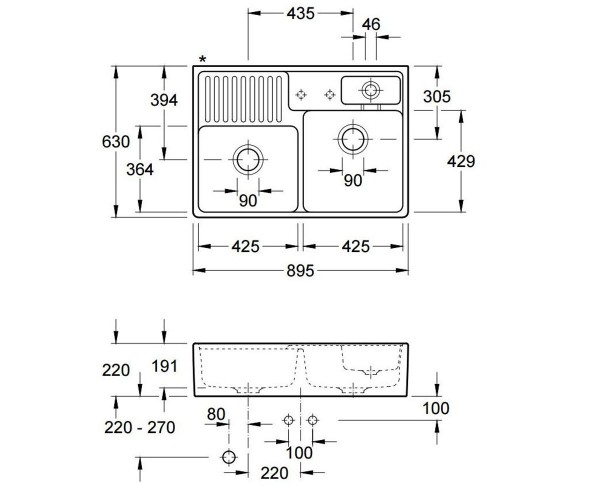 Мийка для кухні Villeroy & Boch Double-bowl sink подвійна 89,5х63 см кераміка steam 632391SM