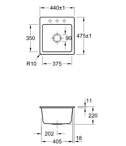 Мийка для кухні Villeroy & Boch Subway 45 XS Flat 44х47,5 см кераміка chromit 67812FJ0