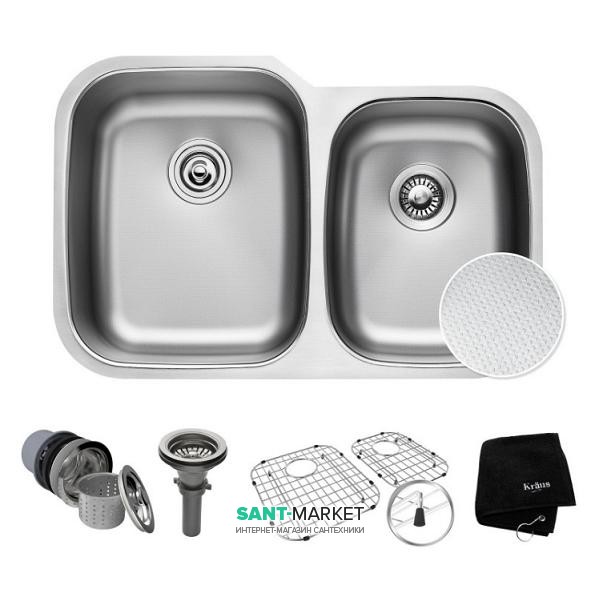 Мийка для кухні асиметрична Kraus Premier Outlast Microshield під стільницю нержавіюча сталь