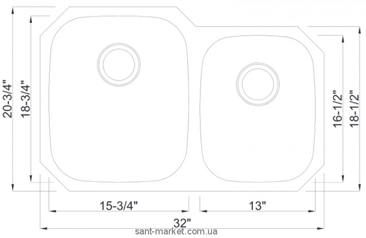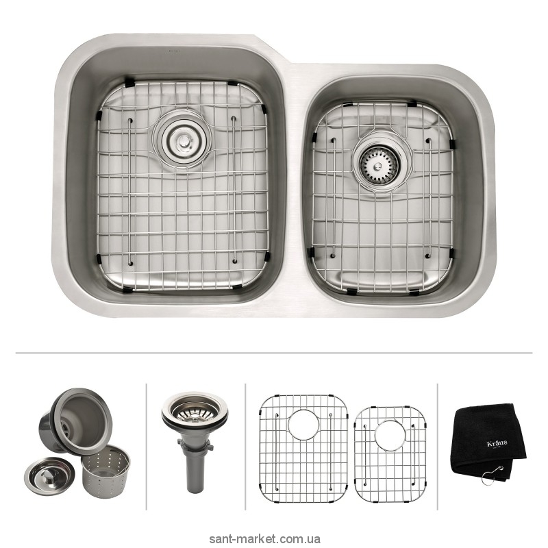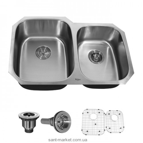 Мийка для кухні асиметрична (нестандартна) Kraus 2 чаші під стільницю нержавіюча сталь хром KBU-24