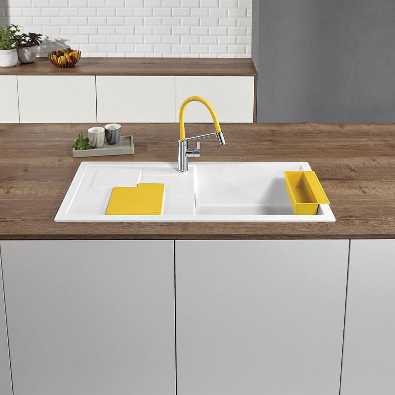 - Рекомендованийзмішувач: BLANCO VIU-S з гнучким кольоровим зливом для гармонійного поєднання з аксесуарами