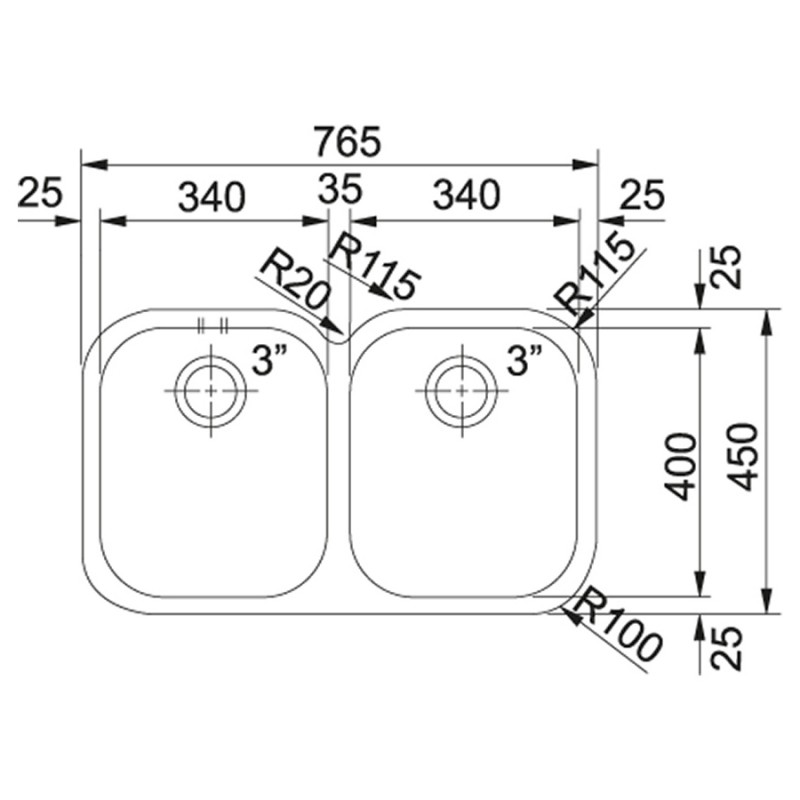 Прямокутна кухонна мийка під стільницю Franke Armonia AMX 120 (122.0021.446) з полірованої нержавіючої сталі з двома чашами без крила.