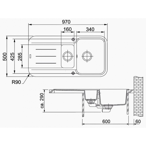 Врізне прямокутна кухонна мийка Franke Pebel PBG 651 (114.0306.748) ваніль з фраграніта, зворотний з двома чашами і крилом.