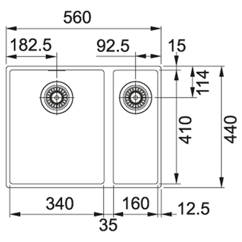 Прямокутна кухонна мийка під стільницю Franke Sirius Tectonite SID 160 (125.0395.609) чорний з тектонайта з двома чашами без крила.