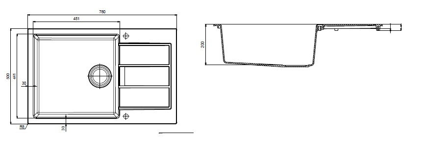 Розміри мийки 780х500 мм