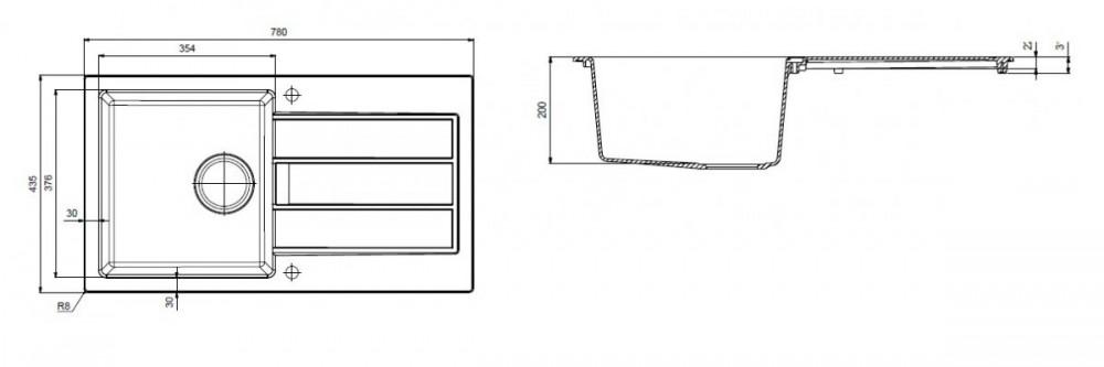 Розміри мийки 780х435 мм