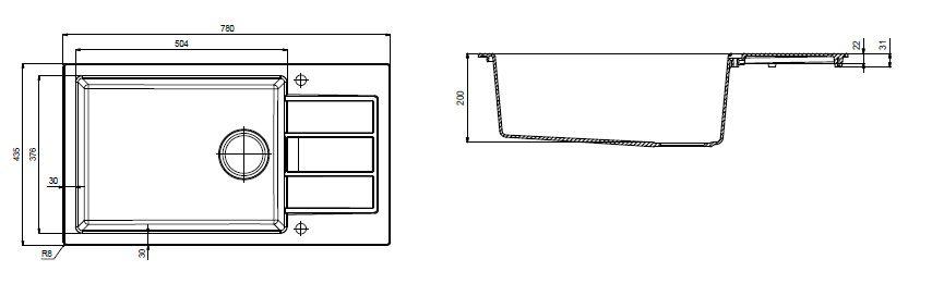 Розміри мийки 780х435 мм