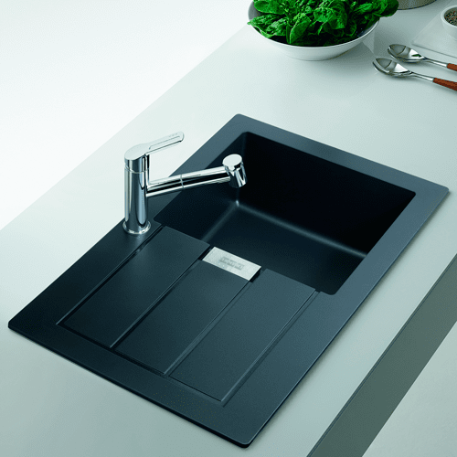 Врізне зворотний кухонна мийка Franke Sirius SID 611-78 (114.0498.003) чорний з тектонайта з однією чашею і крилом.