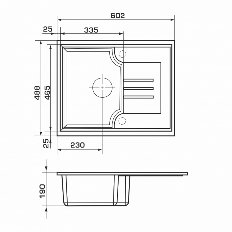 - Розміри мийки (ШхДхВ), мм: 602х488х190