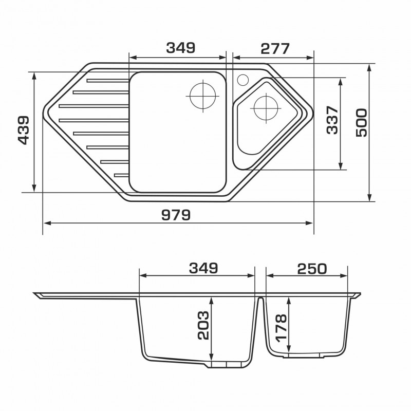 - Розміри мийки (ШхДхВ), мм: 979х500х210