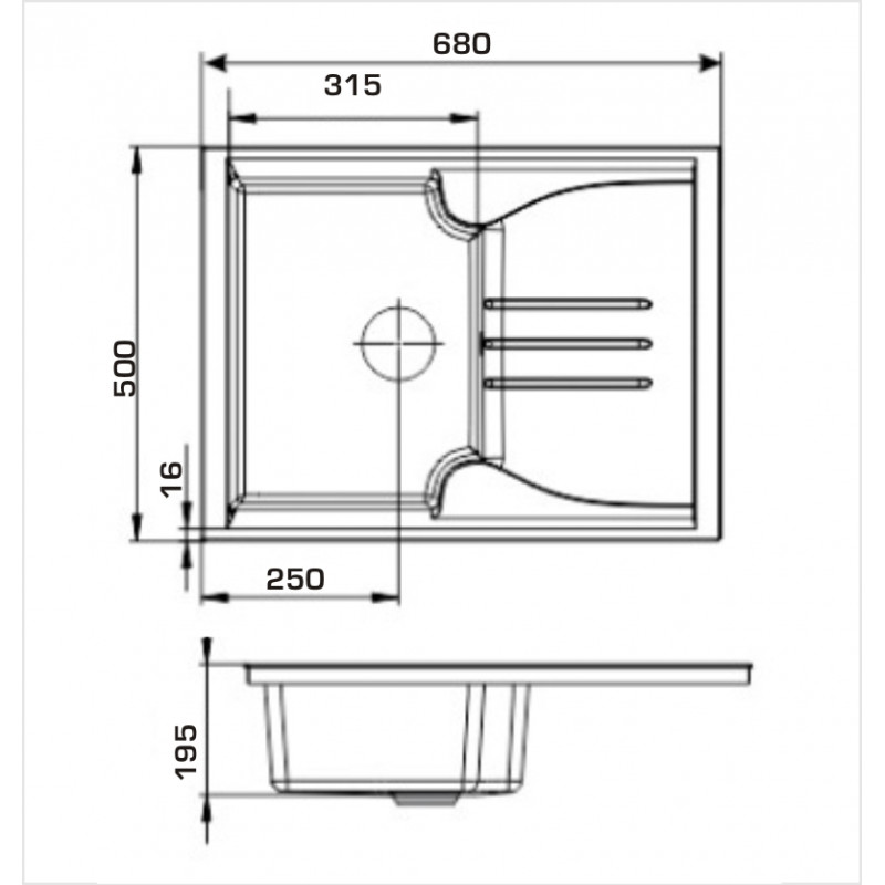 Розміри мийки (ШхДхВ), мм: 680х500х195