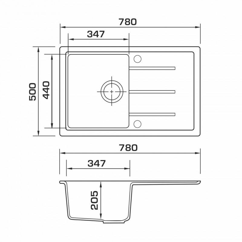 Розміри мийки (ШхДхВ), мм: 780x500x205