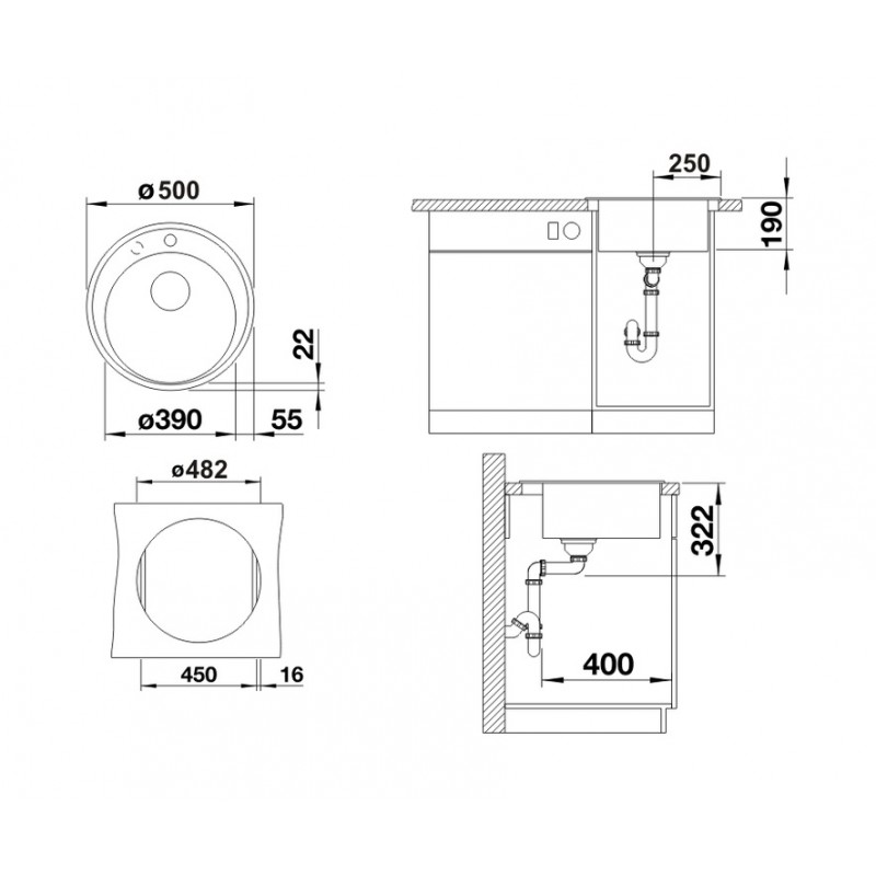 1) Мийка для кухні овальна BLANCO RIONA 45