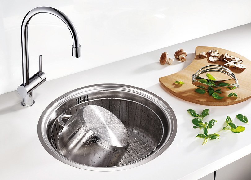 Кругла кухонна мийка Rondosol від німецької компанії Blanco виконана з полірованої нержавіючої сталі.